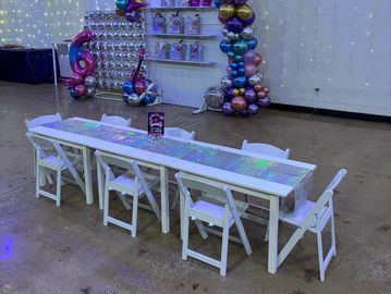 Seating for up to 20 little guests. Pricing includes tables, chairs, and your choice of linen or table runner. Additional table décor can be added for an extra fee.