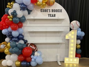 Perfect for displaying party favors or sweet treats. Marquee numbers and additional décor are available as add-ons.
